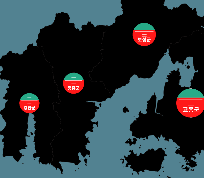 남쪽을 봐도 순천, 광양, 진구 사천 같은 곳들이 늘어났다.