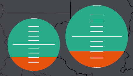 문제는, 사각형 막대가 아니라 원이다보니 양에 비례하도록 면적을 분할하는게 단순하지 않다는 것이었다.