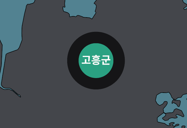 아래 그림에서 검은색 테두리로 표현된 큰 원은 2000년의 고흥군 39세 이하 인구, 내부의 청록색은 2020년의 39세 이하 인구다. 그런데 얼마만큼 줄어들었는지 직관적으로 알아볼 수 있는가?