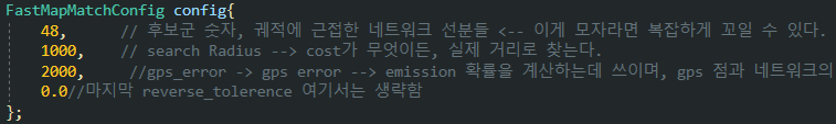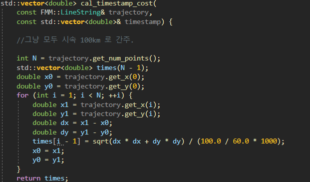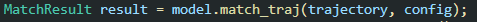 하나의 궤적을 읽어서 다음의 함수를 호출하게 되면 본격 맵 매칭 작업이 수행된다.