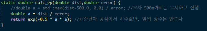 관측점과 링크 사이의 거리가 가까울수록 높은 점수를 주고, 멀 수록 낮은 점수를 준다. dist/error 비에 따른 ep는 다음과 같다.