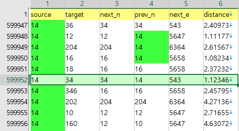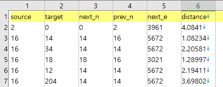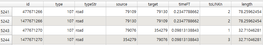 여기서 준비한 2019_network.geojson의 경우 위처럼 반대 방향의 진행을 겹쳐서 넣어주되, id에 1,000,000,000을 더해서 구분할 수 있도록 했다. 물론, 모든 기본 id 중 1,000,000,000이 넘는 것이 없어야 한다. 10억을 더함으로써 32비트 Integer 범위 안에 들어올 수 있도록 했다.