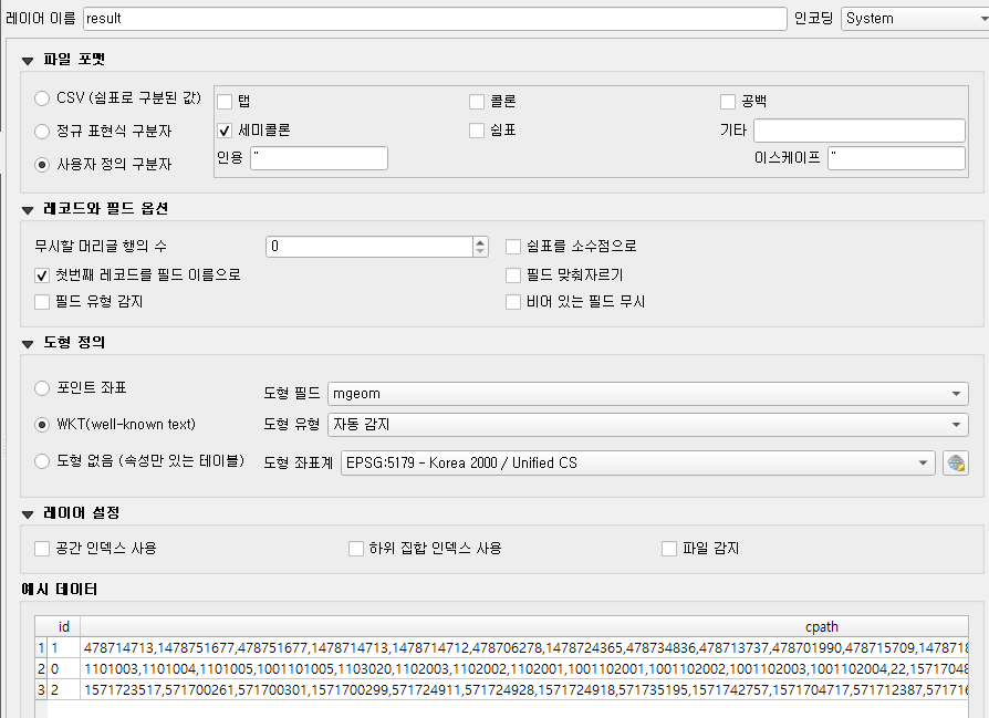 원본 라이브러리는 특정 좌표계에 구애받지 않는데, vuski 계정에 올린 라이브러리는 EPSG:5179 좌표계 기준으로 맞춰져 있다. srid에 다른 숫자를 넣어도 동작하지 않는다.(매개변수 자리는 만들어 놓았는데 함수 안에서는 쓰이지 않는다. )