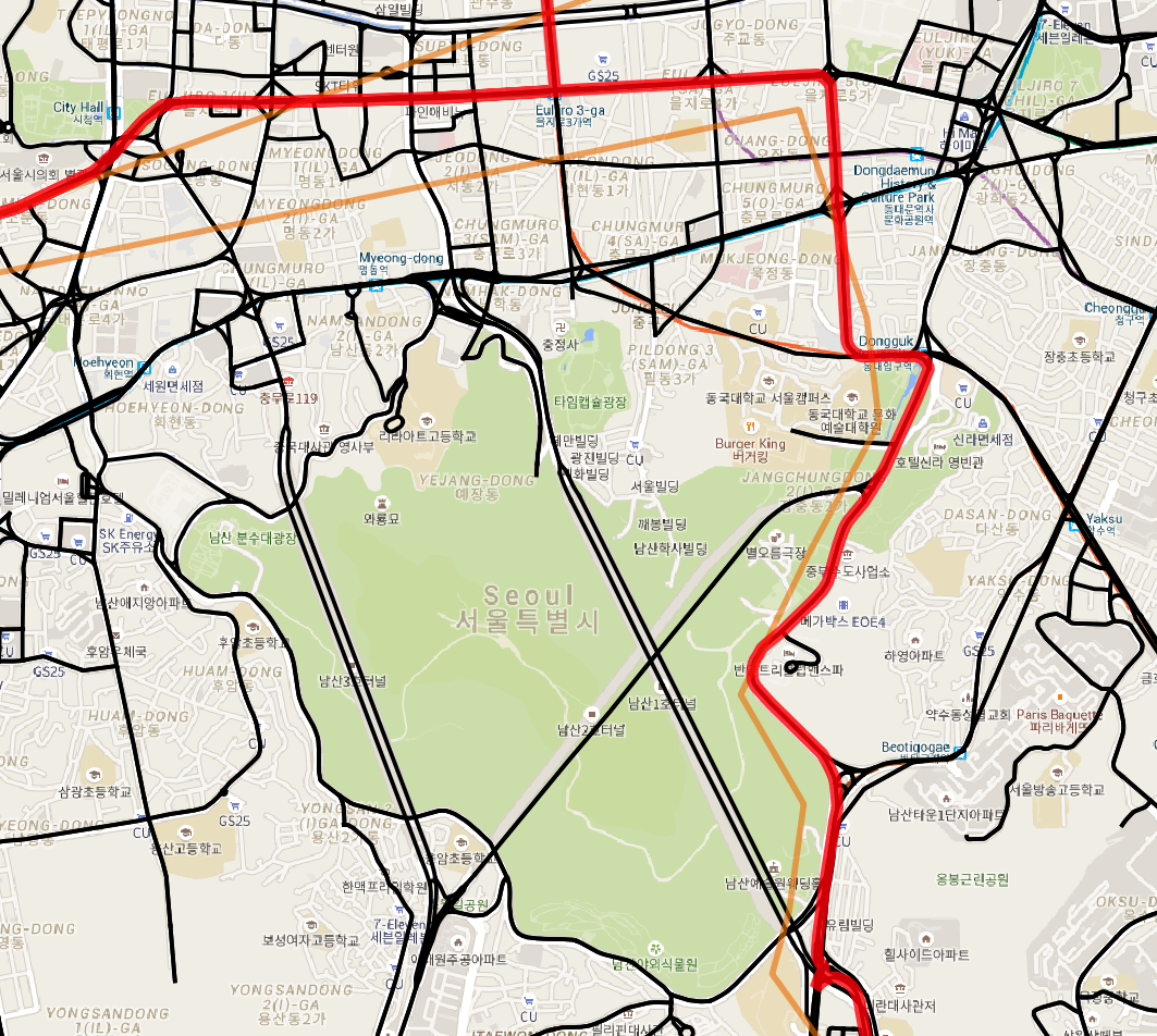 관측값들이 촘촘할 경우에는 그 선들만 이어도 전체 경로들이 완성되겠지만, 관측값들이 듬성듬성 있을 경우 그 사이사이를 이어주어야 한다.