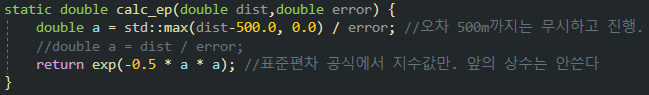 관측점과 링크 사이의 거리가 가까울수록 높은 점수를 주고, 멀 수록 낮은 점수를 준다. dist/error 비에 따른 ep는 다음과 같다.