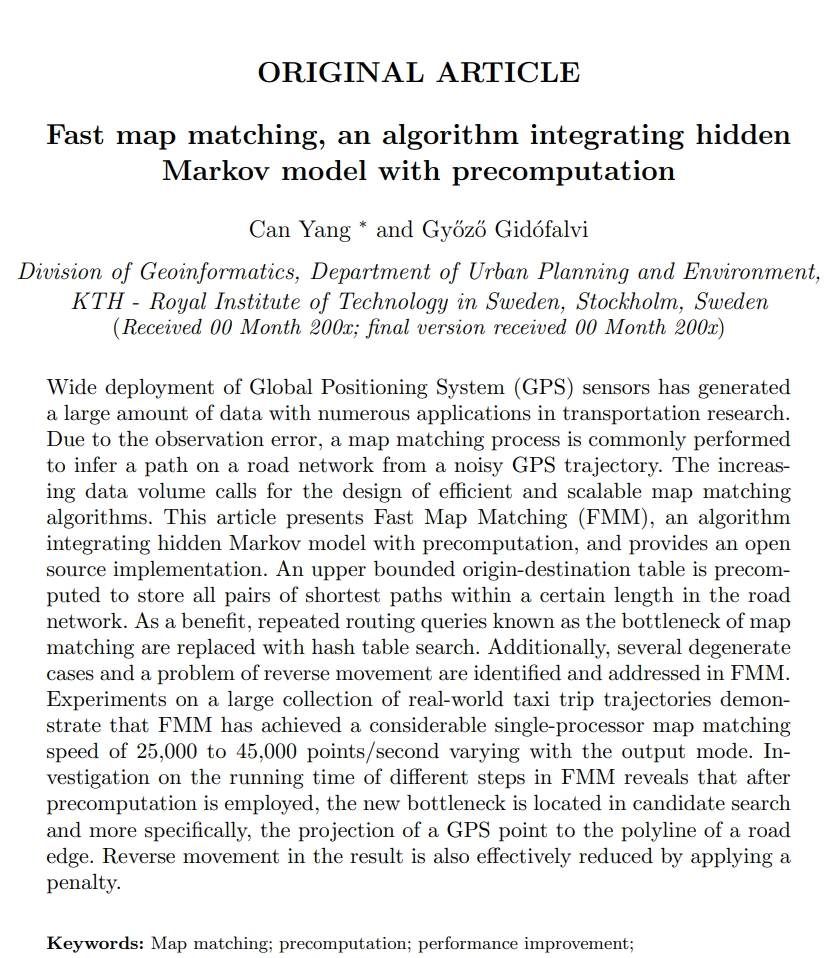 FMM : Fast Map Matching (by Can Yang)