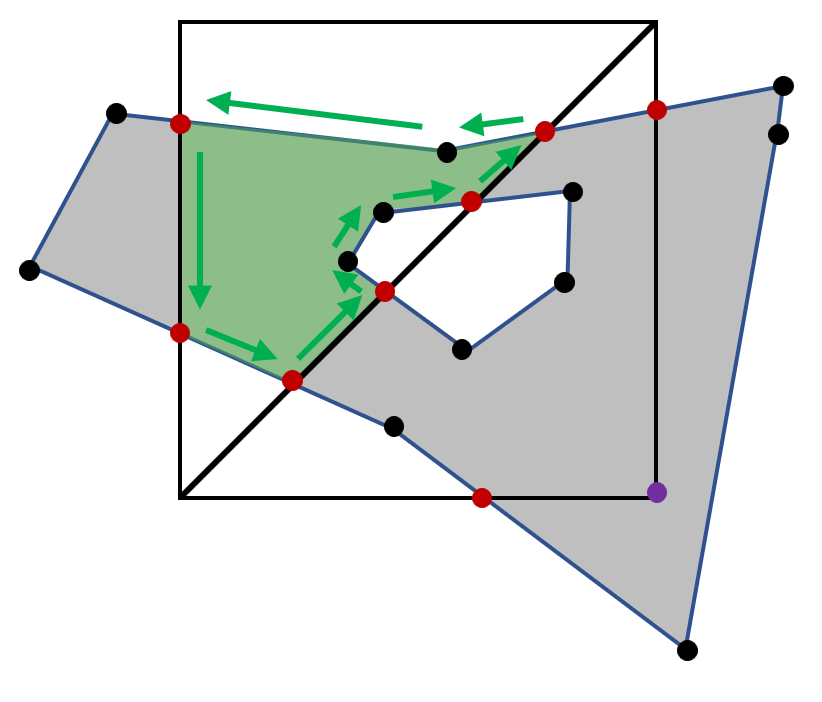 입력된 회색 도형은 최초에 검은색 정점만 가지고 있다. 여기에 위의 작업을 통해 빨간 점들을 추가하고, 마지막으로 그리드의 정점인 보라색 점도 추가해준다.