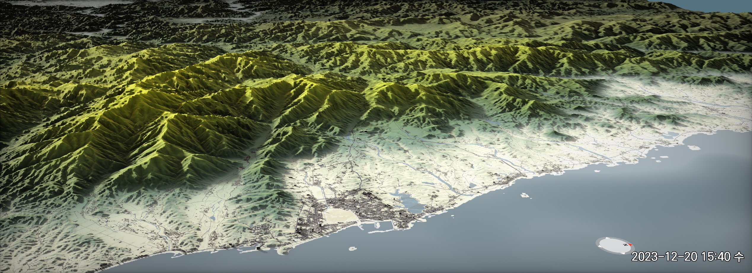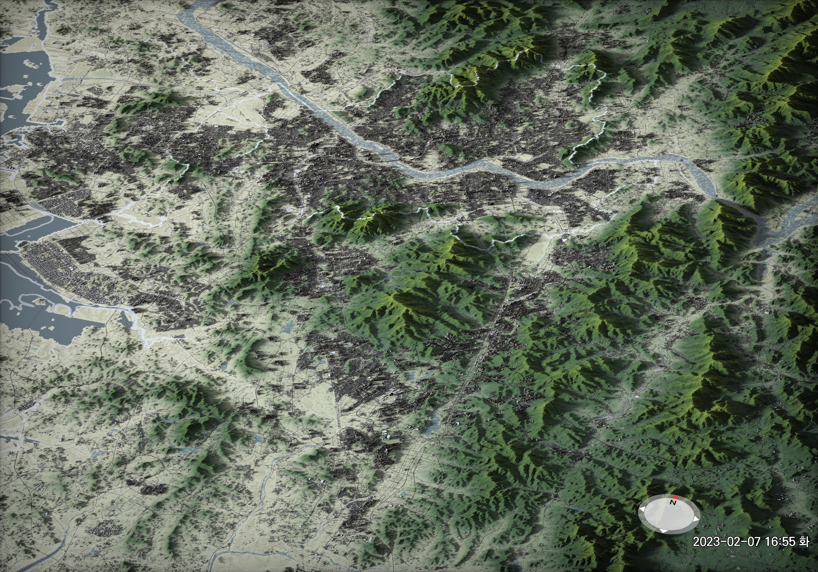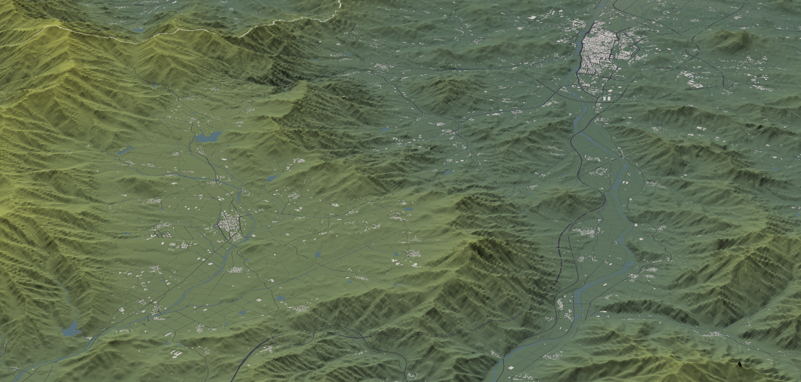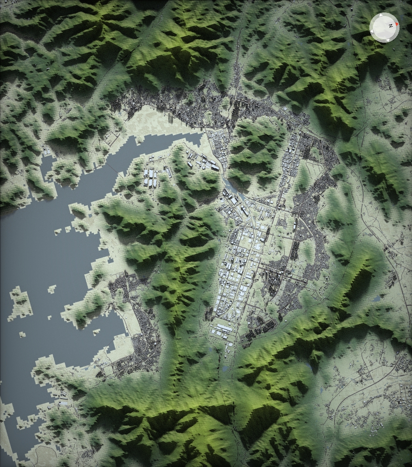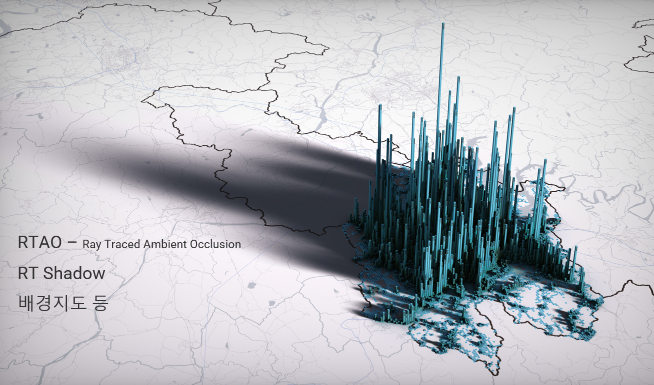 위에서 링크된 메시 셰이더 작업에서는 건물 1766MB, 하천 386MB, 도로 1669MB, 지형 1214MB의 데이터를 사용했다. 아래에서 설명하는 작업에서는 하천과 도로를 지형과 같은 그리드 크기로 잘게 분할하느라 용량이 각각 두 배 가량 늘어났다. 총 7GB 정도의 데이터가 되었다.
