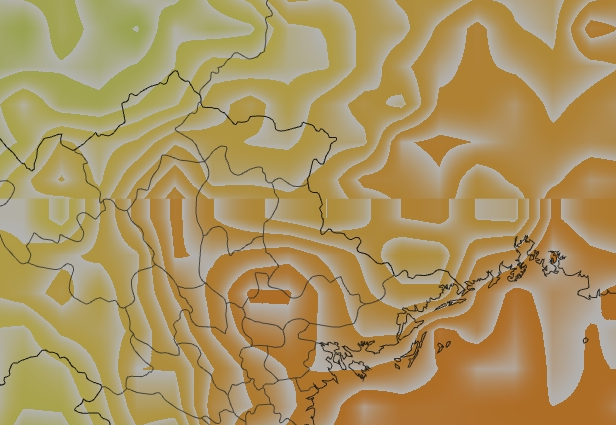 아래 그림에서는 태양 고도 60도 이상인 부분(가장 밝게 보이는 부분)과 기온이 상승하는 지역의 상관성을 직관적으로 관찰할 수 있다.