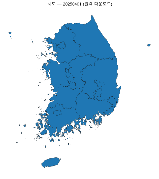 ax.set_title('시도 — 20250401 (원격 다운로드)')