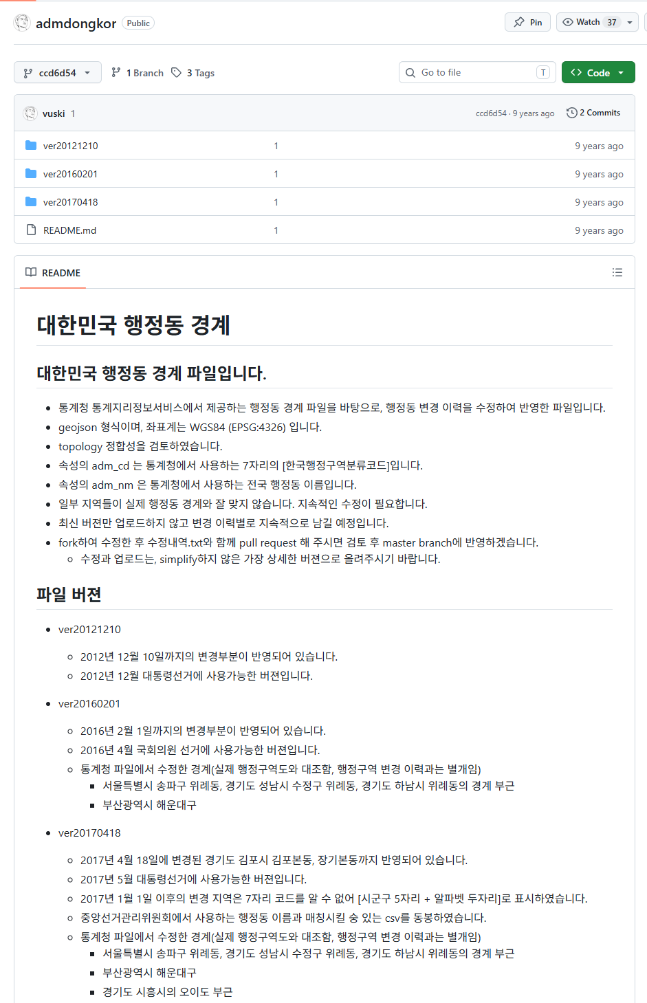 GitHub - vuski/admdongkor: 대한민국 행정동 경계 파일