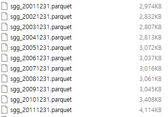 그런데 내가 수정한 파일은 62개 시점 중 1개일 때도 있었다. 그러면 변화된 파일과 연관된 쌍들만 새로 계산하면 된다. 그래서 결과로 만들어진 parquet 파일에 대해서 각각 hash를 생성해두어 저장하게 했다. 다음번에 돌릴 때 hash가 같은 파일 쌍은 계산에서 제외시킬 수 있다. 이 장치로 인해 재계산시 시간을 크게 줄일 수 있었다.