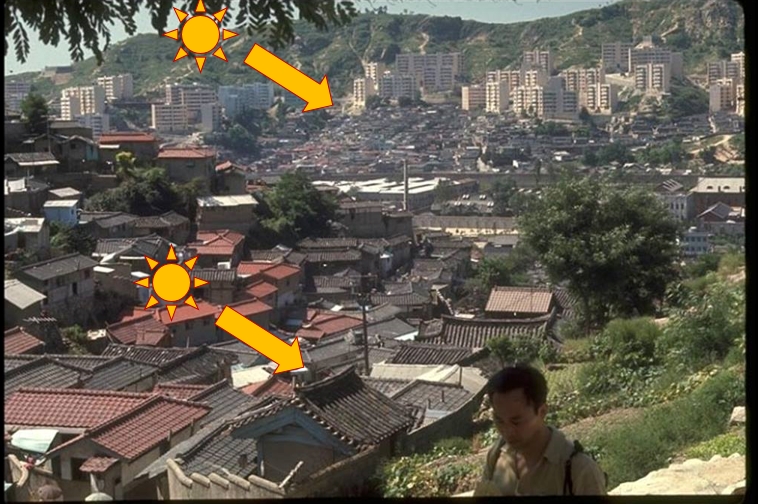 계속 창신동이라는 가정하에, 첫번째 사진의 그림자를 보니 북쪽에서 남쪽을 보고 찍은 것 같다는 생각을 해본다.