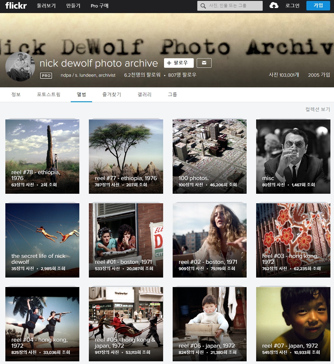 첫 페이지에 플리커 계정이 나온다.
