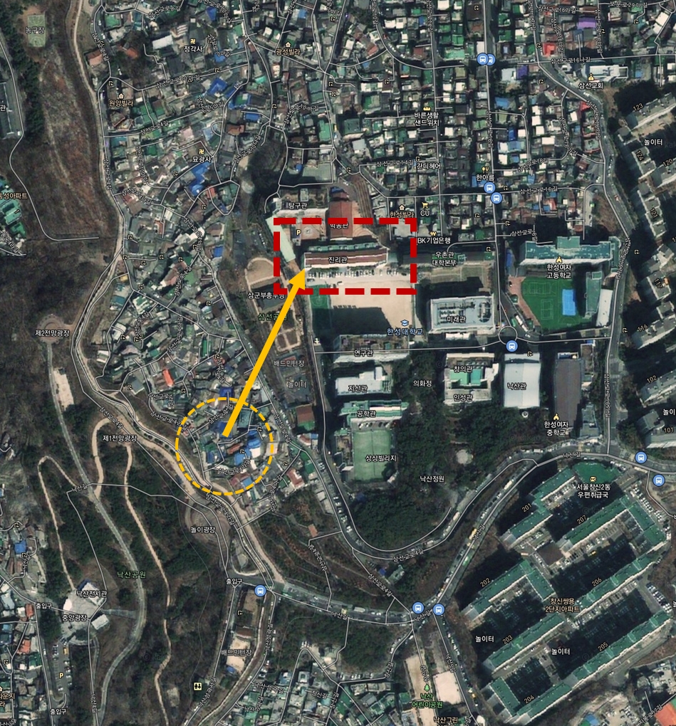 두 곳을 이리저리 살펴봤는데, 위쪽 삼선동이 아니라 아래쪽 창신동에서 찍은 사진 같다. 일단 이 정도 추측만 하고 다음으로 넘어가보자.