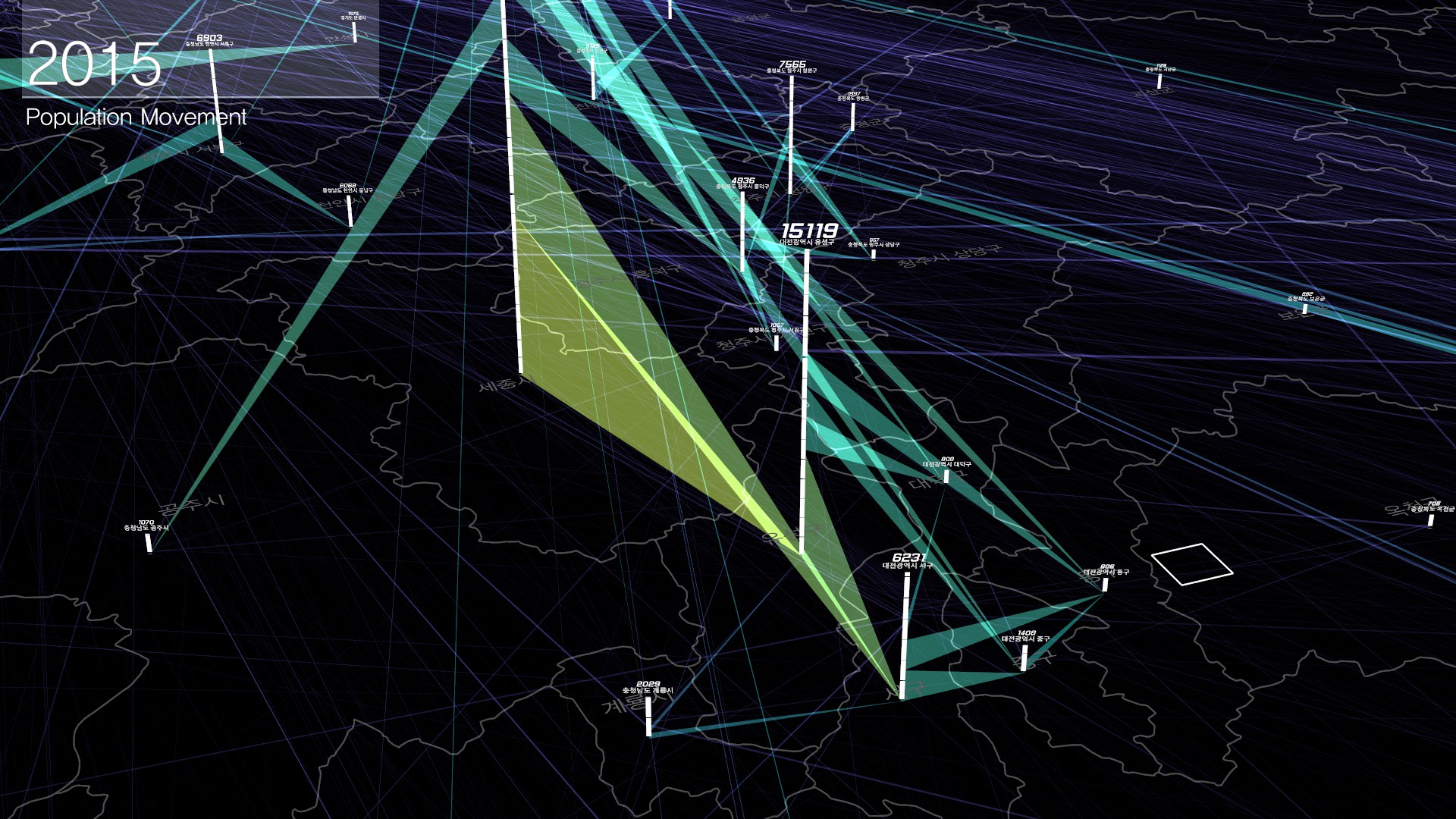 일단 전라남도 무안군에 솟아오른 하얀 막대는, 무안군이 전국 각 시군구와의 관계에서 2013년 한 해 동안 인구가 순유입 된 경우를 모두 더한 것이다. 한 가지 헷갈리면 안 되는 점은 무안군의 2013년의 총 순유입량은 아니라는 점이다. 무안군이 어느 시군구로 순유출 된 경우가 있다면, 그 수치는 이 막대 그래프에서 계산되지 않았다. 따라서 위의 그림만으로는 2013년 한 해 동안에 무안군의 인구가 늘었는지 줄었는지는 판단하기 어렵다. (이것이 앞서 말한 단점이다)