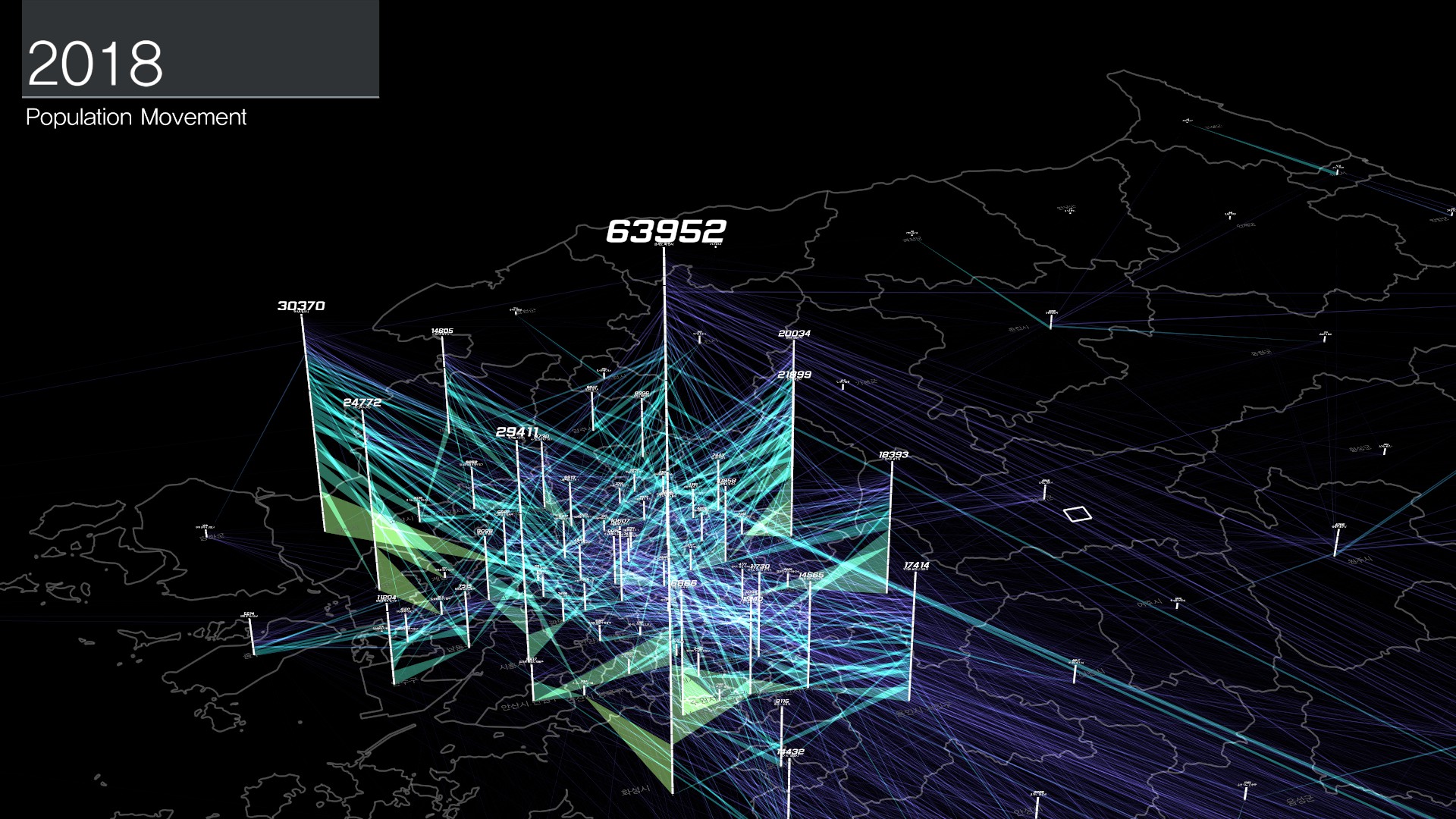 위의 시각화는 약간 설명이 필요하다. 복잡한 OD(Origin-Destination) 데이터를 어떻게 보여줄지 고민하다 만들었는데 아직 단점도 많다.
