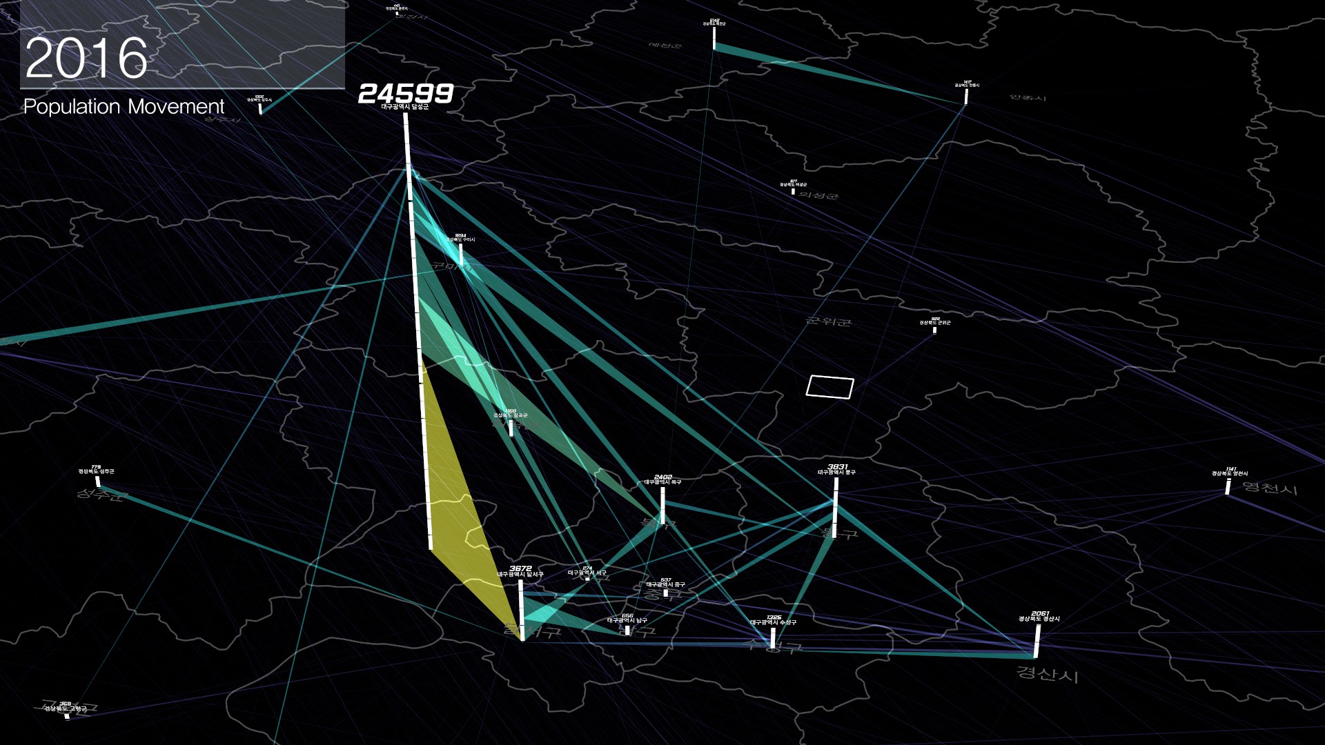 2016년에 달성군으로 얼마나 많은 사람들이 갔는지 볼 수 있다.
