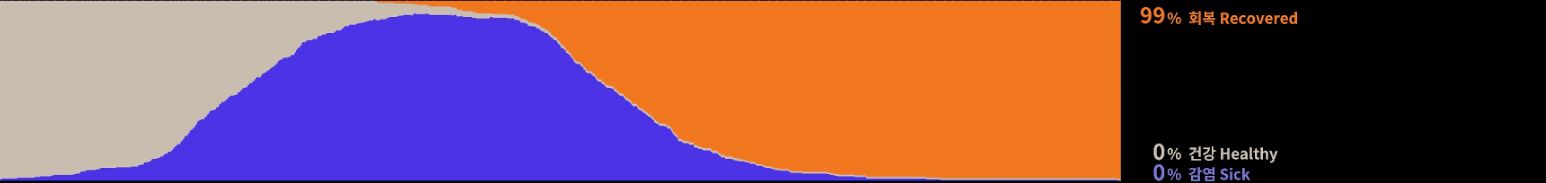 병이 전파되는 정도는 눈에 띄게 줄어들고, 확진자들이 모두 회복되는 순간 깔끔하게 종식된다.