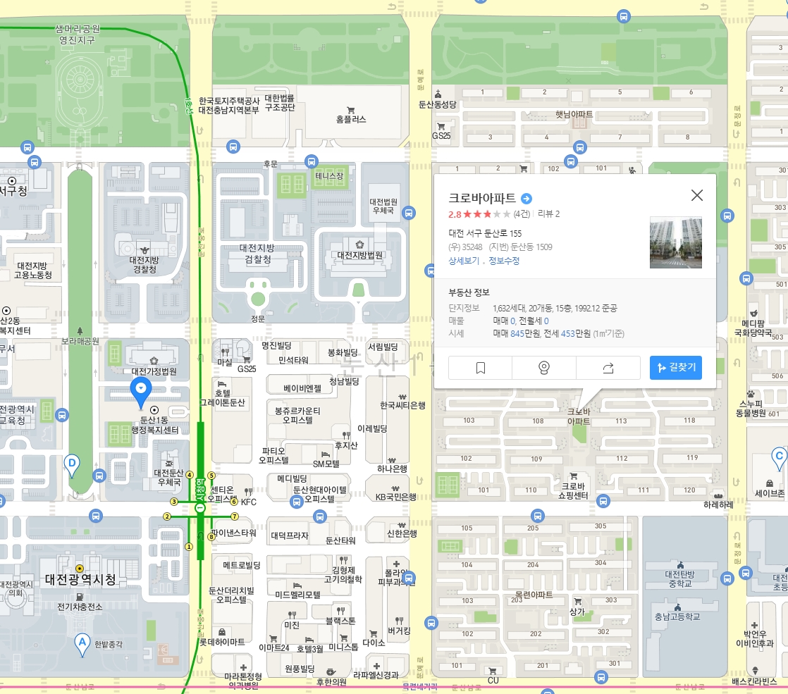 서울과 수도권에 비하면 높지 않은 가격이지만, 대전에서는 주변의 신축아파트만큼의 가격이 되는 곳이다. 어디인지 찾아보자.