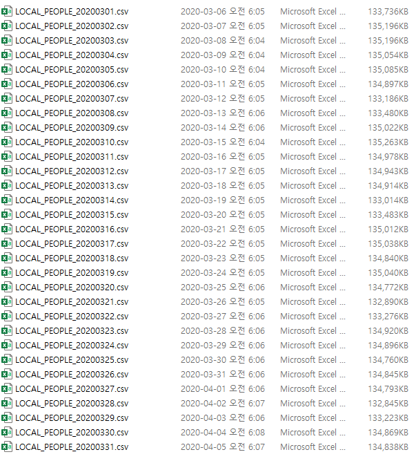 생활인구는 서울 열린데이터 광장에서 다운받을 수 있다.