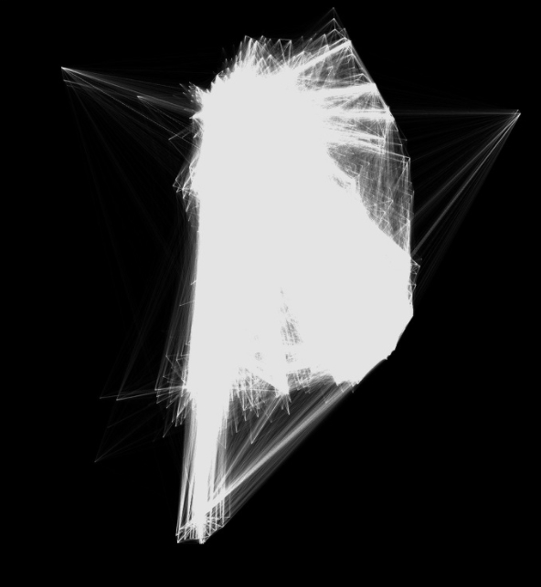 d3.js로는 이 정도 시도를 해봤던 것 같다. 요새는 d3.js도 canvas를 사용해서 퍼포먼스를 높일 수 있고 webgl과의 결합도 다양하게 시도되는 것 같다. 그때는 내가 잘 몰라서 저 정도가 웹브라우저 퍼포먼스의 한계라고 생각하고, 자바 기반의processing 으로 넘어갔었던 것 같다.