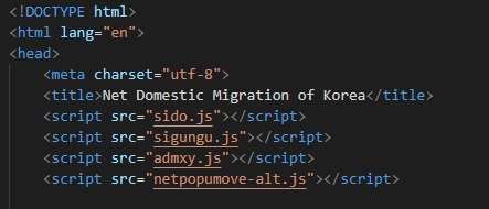 앞의 글에서 여러가지 사례를 들어 OD 시각화에서 고민했던 점들을 썼다면, 이번에는 전국 인구 순이동 시각화를 조작해보면서 설명해보겠다.