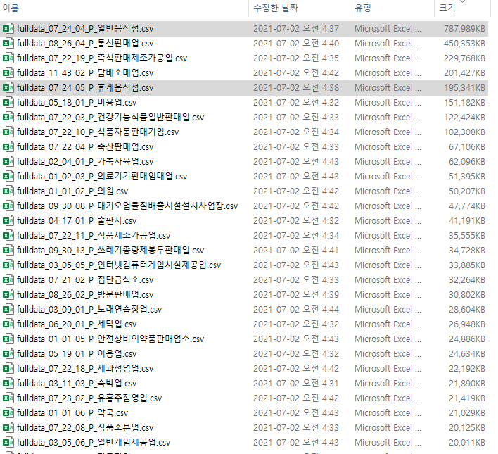 지자체에 인허가 받아야 하는 업종에 한해 1주일단위로 개폐업종이 업데이트가 된다. 가장 마음에 드는 점은 괜히 일일이 검색하지 않고 이 사이트에 있는 데이터를 원클릭 한 방에 받을 수 있다는 부분이다.