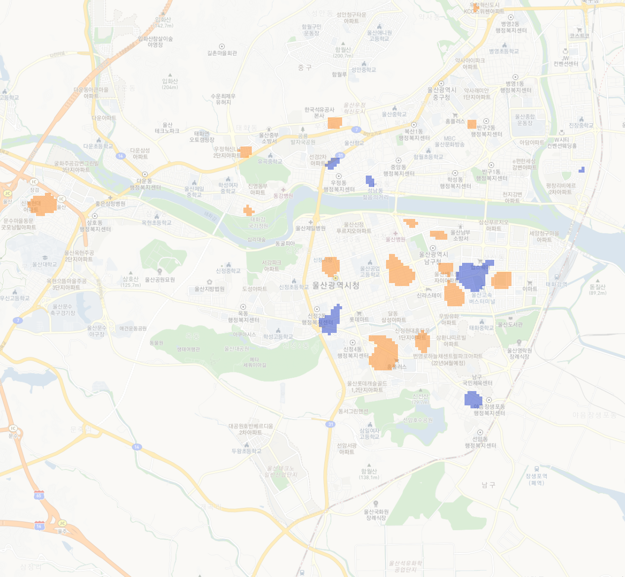 어쨌든 변화가 없는 것은 아닌데, 히트맵 단계 자체를 서울의 스케일에 맞춰놓아서 잘 안보일 수도 있겠다는 생각도 든다.