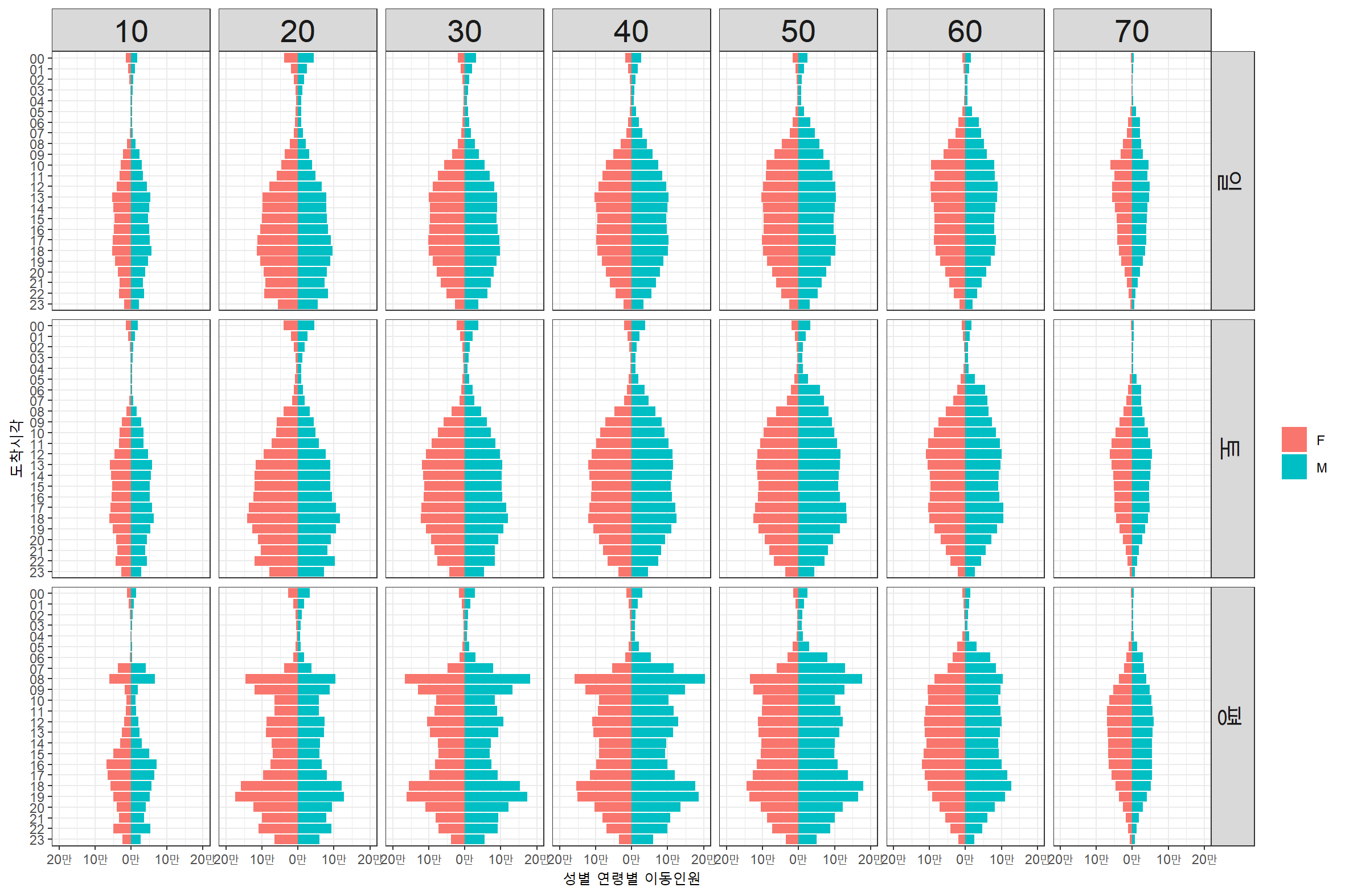 서울시에서 '생활이동' 데이터를 공개했다. KT의 휴대폰 시그널을 바탕으로 언제 어디서 어디로 어떤 사람들이(성연령) 이동했는지에 대한 데이터다.