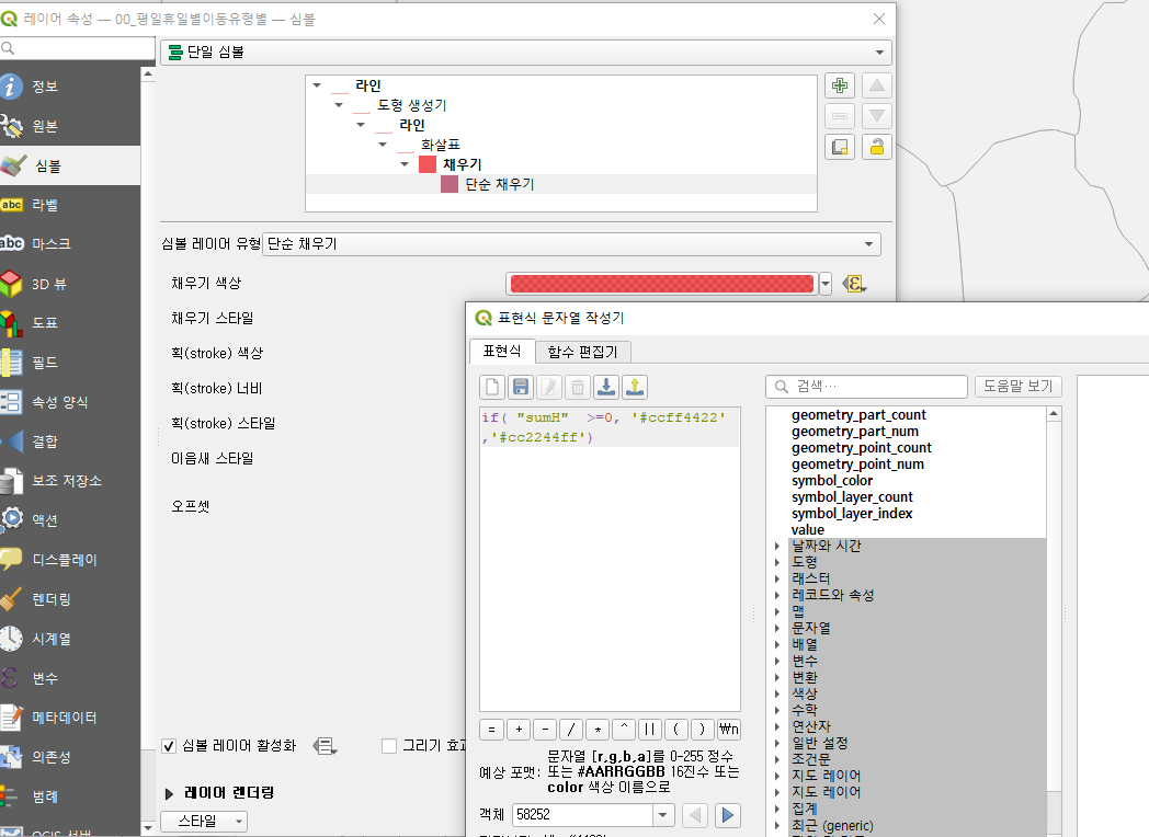 위의 트리에서 마지막 단계인 [단순채우기]를 선택하고 표현식을 적절히 써 넣는다.