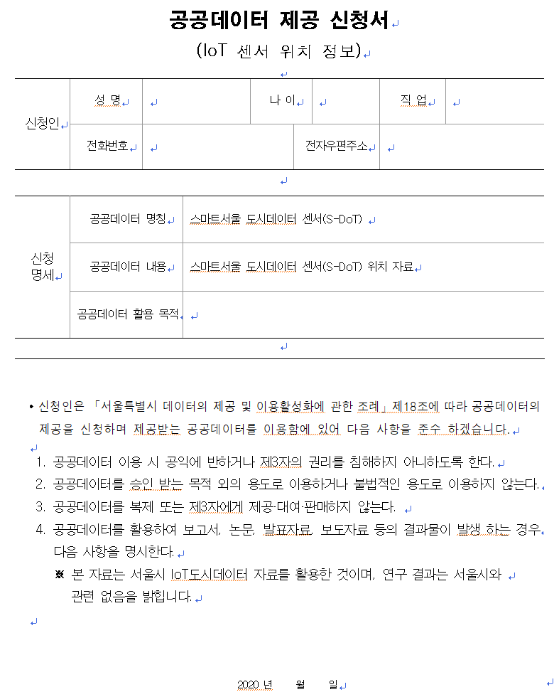 센서 고유번호와 데이터는 있는데, 센서 위치는 아래와 같은 내용을 별도로 이메일로 신청해야 한다.