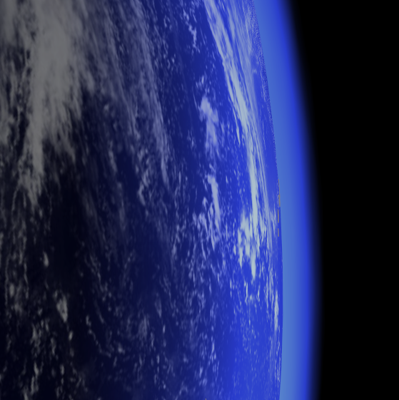 과학적인 사실이 중요한 시각화라면 좀 더 대기에 대해서 공부해야 할 것 같다. 여기서는 우주에서 본 지구 이미지들을 조금 찾아보고 약간의 시행착오를 거쳐 비슷하게 나오도록 했다. 주석으로 처리된 부분은 시행착오 과정이다.